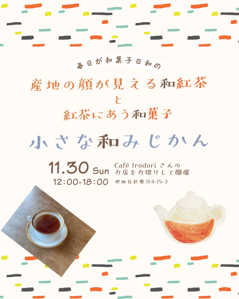 ※ 和紅茶・和菓子のつくり手や内容については、当日のメニューや後日の投稿でご紹介します
